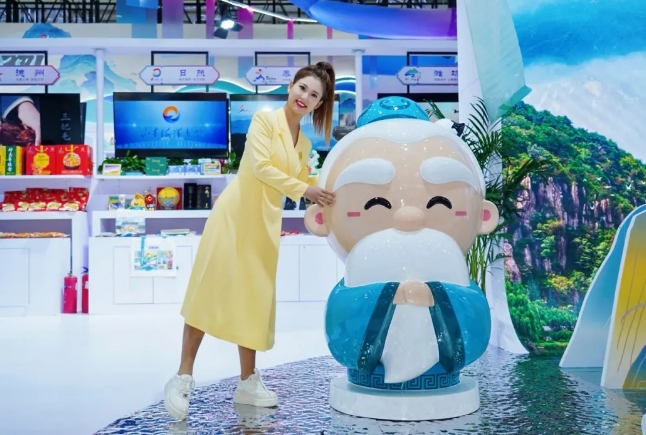 步入山東展區(qū),一座憨態(tài)可掬的“孔爺爺”雕塑正以傳統(tǒng)拱手禮迎候八方來客。
